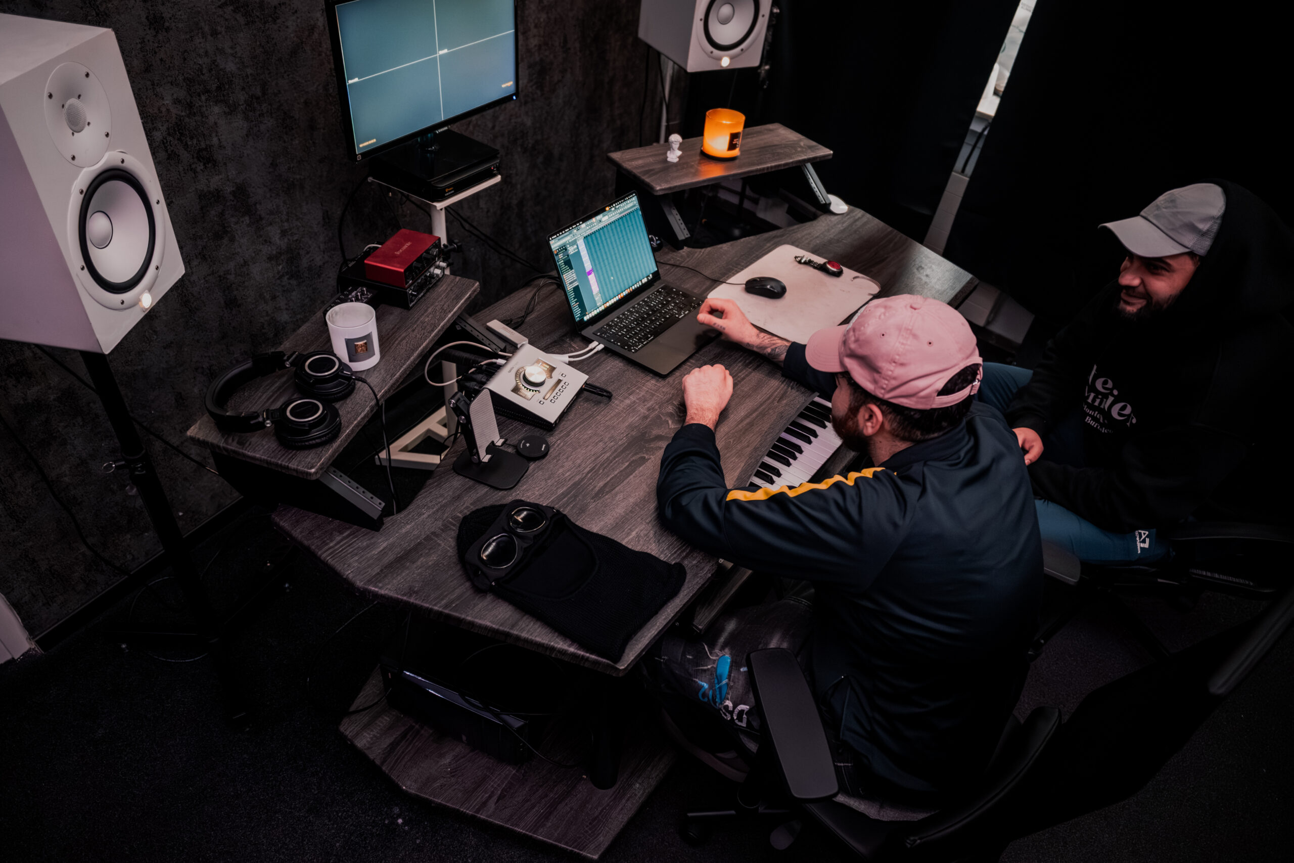 Das Studio ist für größere Sessions mit mehreren Personen ausgelegt. Durch die Kombination aus Regieraum, separater Booth und Chill Area entsteht eine Umgebung, die produktives Arbeiten und entspannte Studio-Vibes verbindet. Rauchen ist erlaubt, kühle Getränke gibt es vor Ort, sodass Sessions ohne Zeitdruck stattfinden können.
