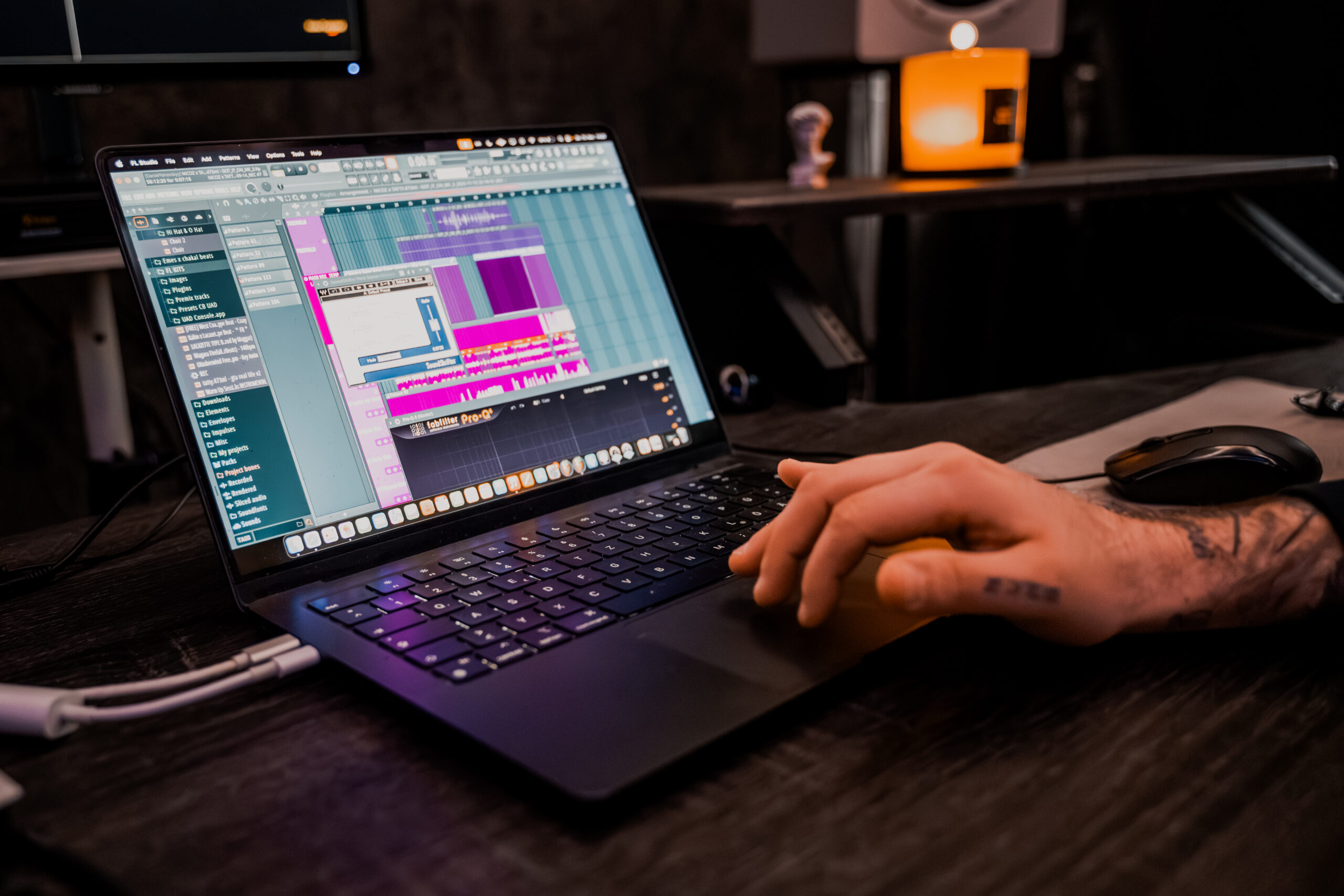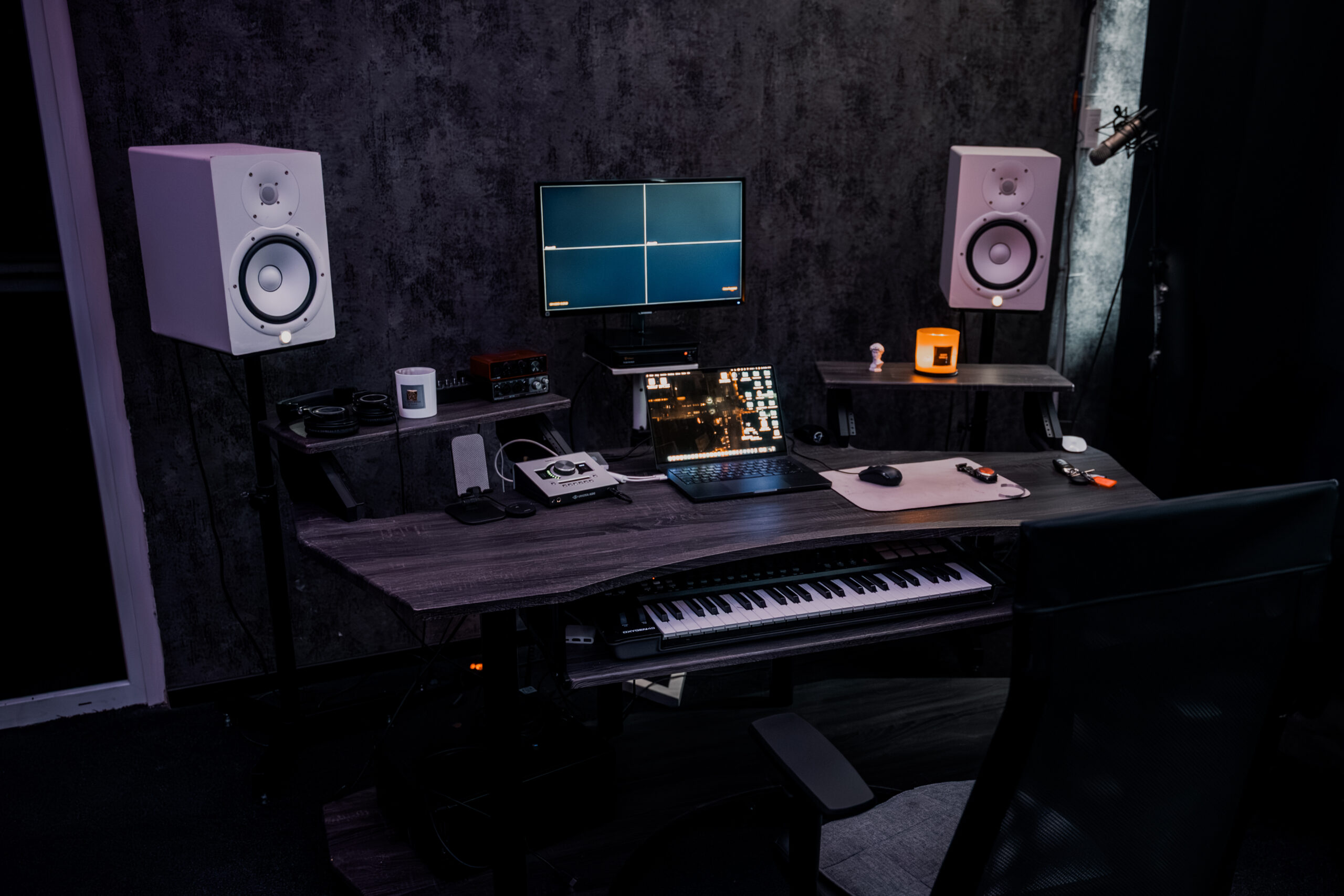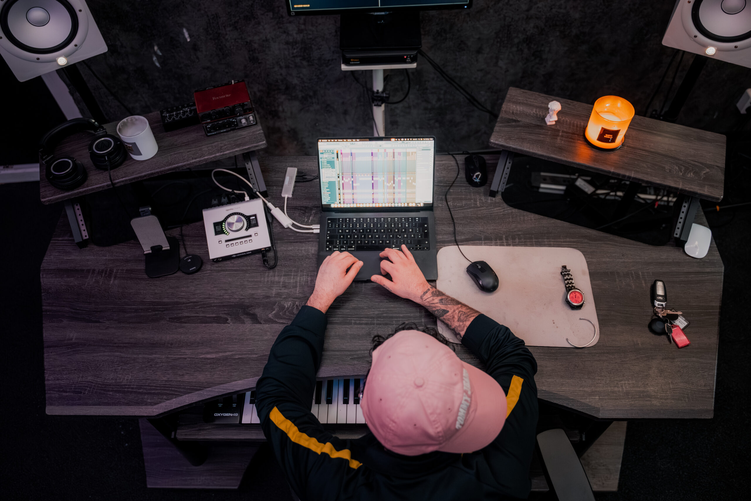 Für die Produktion wird professionelles Studio-Equipment eingesetzt, das für klare Vocalaufnahmen und präzises Mixing ausgelegt ist. Zum Setup gehören unter anderem das Sony C100 Mikrofon, das UAD Apollo X Interface sowie die Yamaha HS8 Studiomonitore für zuverlässiges Monitoring.