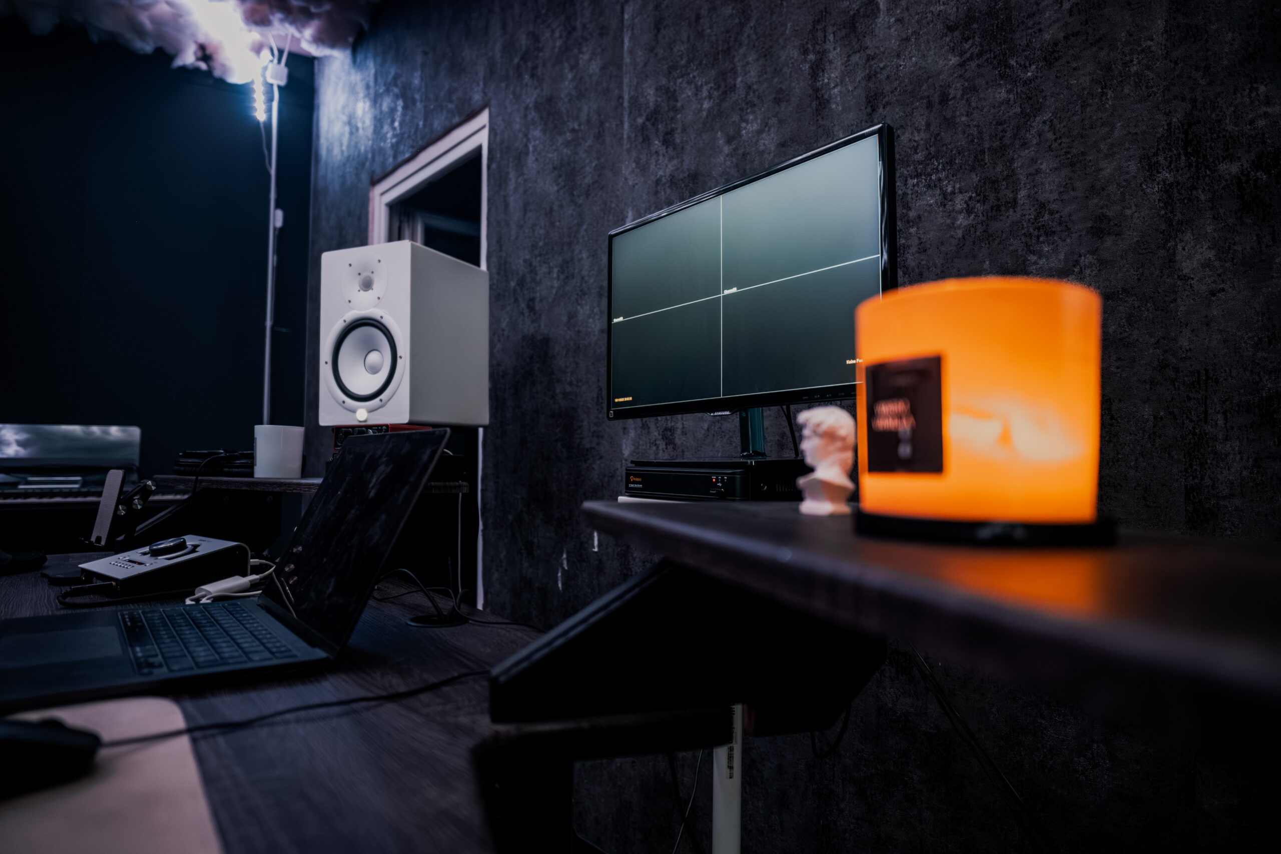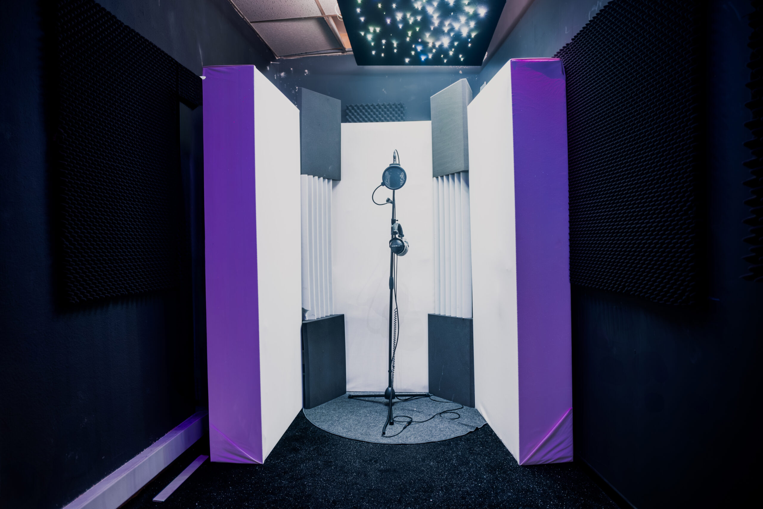 Der Producing und Regieraum wurde speziell für Vocalaufnahmen, Beatproduktion und komplette Musikproduktionen konzipiert. Die separate Recording Booth ermöglicht saubere und kontrollierte Aufnahmen. Visuelle Highlights wie der Wolkenhimmel im Regieraum und der Sternenhimmel in der Booth geben dem Studio seinen unverwechselbaren Look. Ergänzt wird das Setup durch eine Chill-Area für Pausen und kreative Gespräche.